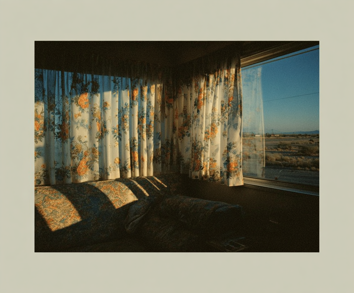 The project began with a question about place. Not a specific location but a type of place.The American roadside as a constructed environment. Gas stations, parking lots, motel signage, power lines against flat sky. Architecture that nobody designed on purpose.